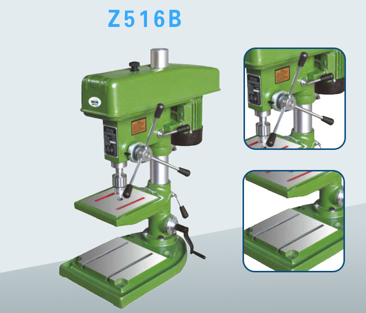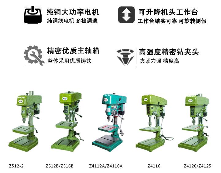 3、台式钻床可安放在作业台上,主轴垂直布置的小型钻床。整机精度高,刚性好。