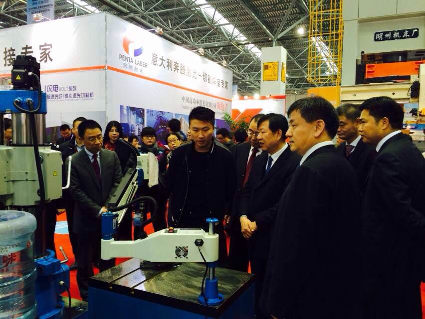 展厅,我司营销总监王伟强负责接待并作介绍,省市领导们对精密的摇臂钻及G系列新品赞不绝口,对产品转型升级表示肯定,对智造数控高精度机床新技术的发展和运用给予高度评价.
